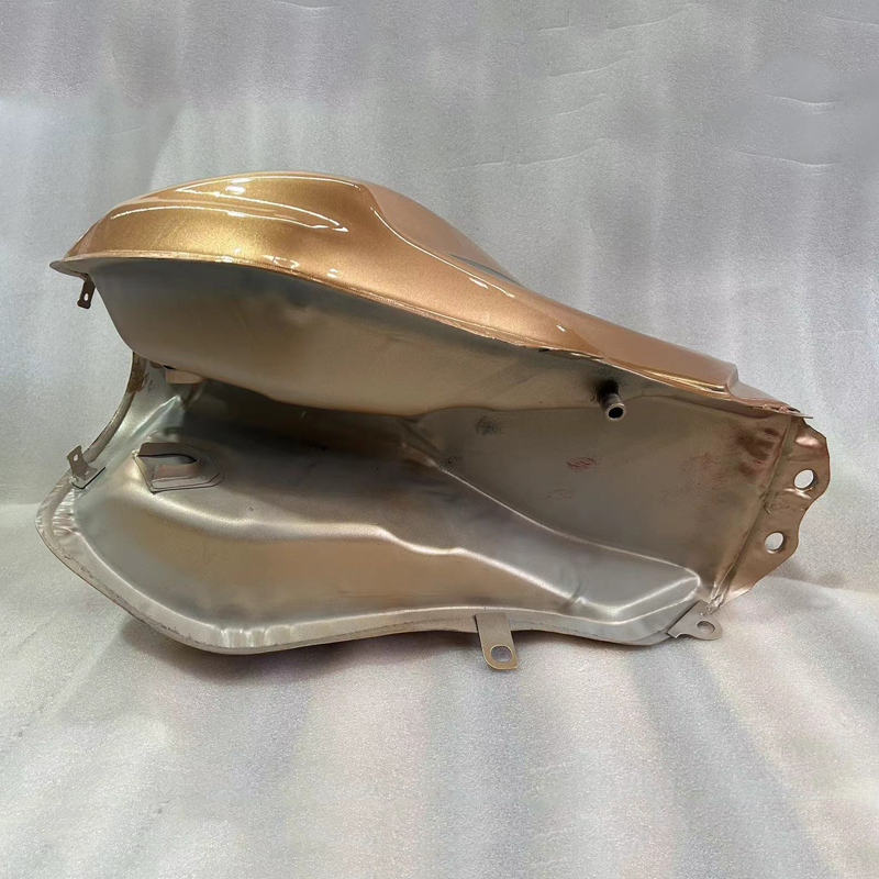 The manufacturing process of the fuel tank for three wheeled motorcycles mainly includes stamping, welding, spraying, and assembly. Firstly, press the metal sheet according to the design drawings to shape it into various components of the fuel tank; Then, the various components are welded together through a welding process to form a complete fuel tank; Next, proceed with the spraying process to coat the surface of the fuel tank to improve its corrosion resistance and aesthetics; Finally, assemble the fuel tank according to actual needs, connect the corresponding accessories, and ensure its normal operation.